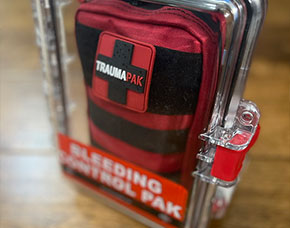 Created for schools, churches, and public places. This kit empowers anyone to act when bleeding starts.